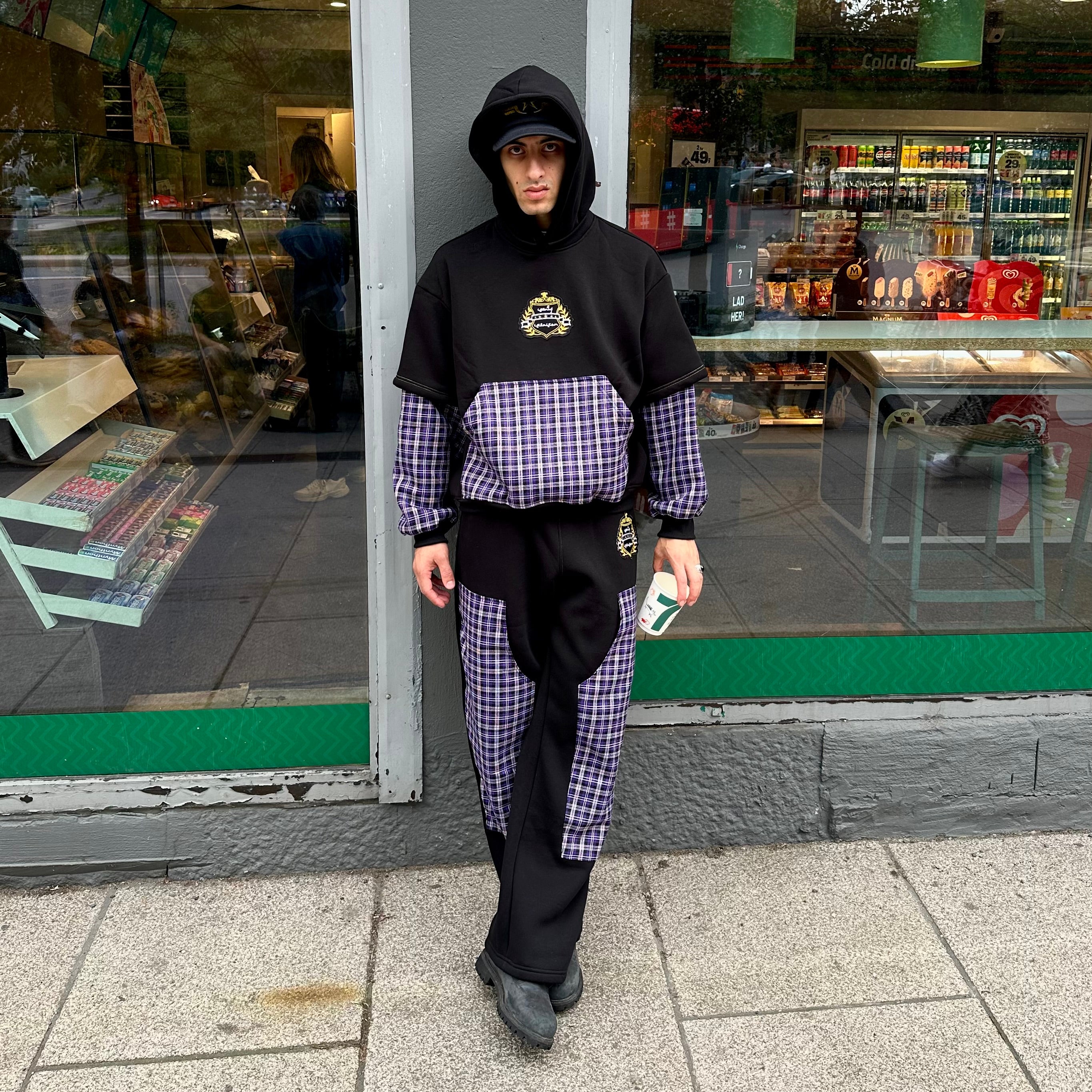 “SENTY SEASON” Flannel Black Double Sleeve Hoodie